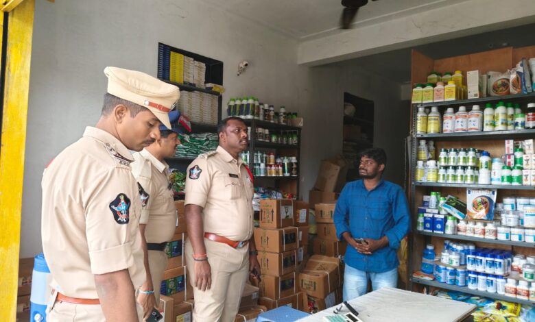 ఎరువులు, పురుగుల మందు దుకాణాలపై పోలీసుల ఆకస్మిక తనిఖీలు