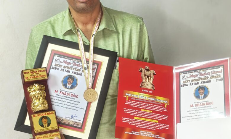 సేవా రత్న అందుకున్న ఎం ఖాజా బేగ్