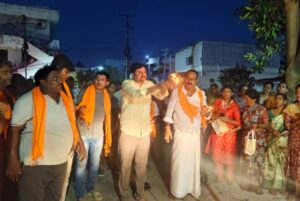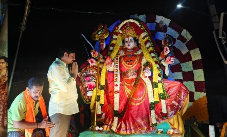 మంగళగిరి మండలం పెద్దవడ్లపూడి గ్రామంలో శనివారం శ్రీ కనకదుర్గమ్మ అమ్మవారి ఉత్సవ కమిటీ ఆధ్వర్యంలో నవరాత్రి నిమజ్జనోత్సవం భక్తి శ్రద్ధల మధ్య ఘనంగా జరిగింది. అమ్మవారిని పూలతో, అలంకరించిన ఊరేగింపులో భక్తులు ఉత్సాహంగా పాల్గొన్నారు. గ్రామ వీధులన్నీ అమ్మవారి జయజయధ్వానాలతో మార్మోగాయి. మేళతాళాలు, కనకతప్పట్ల సవ్వడులు వాతావరణాన్ని ఉత్సవమయం చేశాయి…ఈ సందర్భంగా మంగళగిరి వ్యవసాయ మార్కెట్ యార్డ్ చైర్మన్ జవ్వాది కిరణ్చందు ముఖ్య అతిథిగా హాజరై అమ్మవారికి ప్రత్యేక పూజలు నిర్వహించారు. . గ్రామ పెద్దలు, కమిటీ సభ్యులు నిమజ్జన ఏర్పాట్లను సమర్థంగా నిర్వహించారు. మహిళలు పెద్ద సంఖ్యలో పాల్గొని “జై కనకదుర్గమ్మ” అంటూ భక్తి జ్వాలలు రగిలించారు. గ్రామ యువత సాంస్కృతిక కార్యక్రమాలతో ఉత్సవానికి ప్రత్యేక ఆకర్షణగా నిలిచారు..ఉత్సవ కమిటీ సభ్యులు మాట్లాడుతూ, అమ్మవారి ఆశీస్సులతో గ్రామానికి సుభిక్షం, శాంతి చేకూరాలని ఆకాంక్షించారు.నిమజ్జనోత్సవం అనంతరం భక్తులు అమ్మవారి నామస్మరణతో ముగ్ధులయ్యారు.