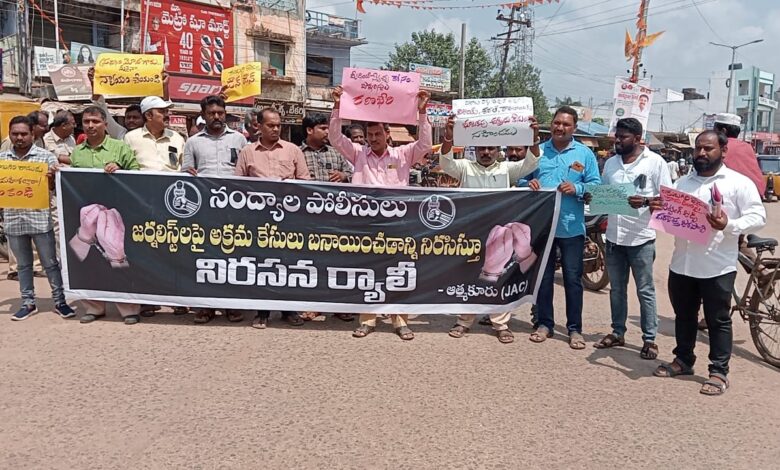 నంద్యాలలో జర్నలిస్టులపై పెట్టిన అక్రమ కేసులు ఎత్తివేయాలి
