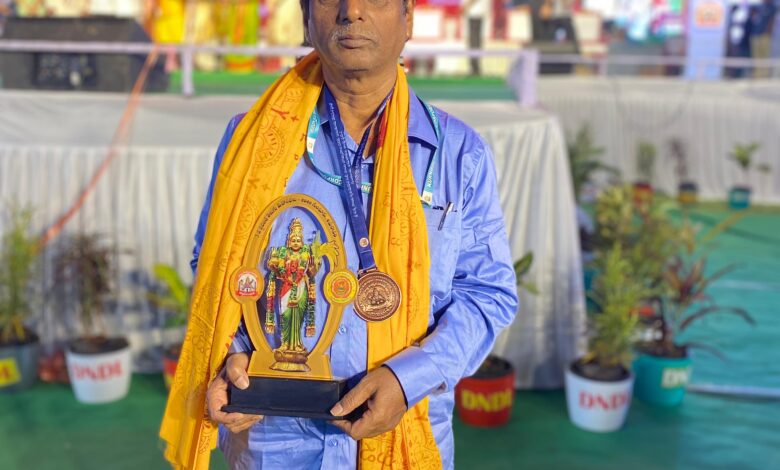 తెలుగు భాష, సాహిత్య పరిరక్షణకు చేసిన సేవలకు గుర్తింపుగా కర్నూలు నగరపాలక సంస్థ మేనేజర్ యన్.చిన్నరాముడుకు ఆంధ్ర సరస్వత పరిషత్ అవార్డు లభించింది. ఆంధ్ర సరస్వత పరిషత్, ఆంధ్రప్రదేశ్ ఆధ్వర్యంలో గుంటూరులో నిర్వహించిన 3వ ప్రపంచ తెలుగు మహాసభలు–2026లో భాగంగా ఆయనను ఘనంగా సత్కరించారు. ఈ కార్యక్రమంలో త్రిపుర రాష్ట్ర గవర్నర్ ఎన్.ఇంద్రసేనారెడ్డి మేనేజర్కు అవార్డును ప్రదానం చేశారు. తెలుగు భాష అభివృద్ధి, సాంస్కృతిక విలువల పరిరక్షణ, సాహిత్య ప్రోత్సాహానికి నిరంతరం కృషి చేసినందుకుగాను ఈ అవార్డును అందజేశామని ఆంధ్ర సరస్వత పరిషత్ ప్రతినిధులు, నిర్వాహకులు గజల్ శ్రీనివాస్ తెలిపారు. తెలుగు భాషపై ఉన్న మక్కువతో నగరపాలక సంస్థ కార్యాలయంలో సంతకాలు, తపాలా నివేదికలు, అధికారిక లేఖలు తదితరాలను మేనేజర్ యన్.చిన్నరాముడు పూర్తిగా తెలుగులోనే రూపొందిస్తారని తెలిపారు. ఇది ఉద్యోగుల్లోనూ, ప్రజల్లోనూ మాతృభాష పట్ల అవగాహనను పెంపొందిస్తోందని పేర్కొన్నారు. దీంతో ఆయనకు సహచర ఉద్యోగులు అభినందనలు తెలిపారు.