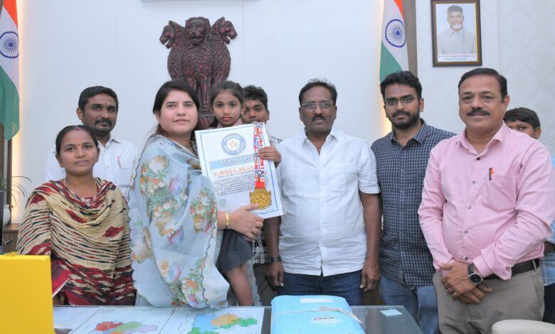నెరవాటి ఇంగ్లీష్ మీడియం స్కూల్కు చెందిన మూడవ తరగతి విద్యార్థిని కె. నాగసారిక (తండ్రి : కె. సుబ్బారాయుడు) వరల్డ్వైడ్ బుక్ ఆఫ్ రికార్డ్స్ సాధించి పాఠశాలకు, జిల్లాకు గర్వకారణంగా నిలిచిందని జిల్లా కలెక్టర్ శ్రీమతి జి. రాజకుమారి తెలిపారు. మంగళవారం కలెక్టర్ చాంబర్ లో కె. నాగసారిక విద్యార్థినిని ఘనంగా సత్కరించి అభినందించారు. కేవలం 28 సెకన్లలో 100 హిందీ పదాలను అత్యంత వేగంగా ఉచ్చరించి ఈ ప్రతిష్టాత్మక రికార్డును సాధించిందని కలెక్టర్ పేర్కొన్నారు. ఈ విజయం నెరవాటి ఇంగ్లీష్ మీడియం స్కూల్ విద్యా ప్రమాణాలకు నిదర్శనమని తెలిపారు.