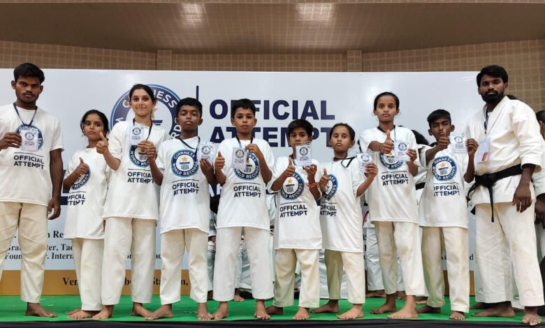 నల్లమల్ల ప్రాంతంలోని మారుమూల గ్రామమైన లింగాల నుంచి గిన్నిస్ బుక్ స్థాయికి ఎదగడం విశేష గర్వకారణంగా నిలిచింది. హైదరాబాద్ వేదికగా నిర్వహించిన భారీ కరాటే ప్రదర్శనలో గిన్నిస్ వరల్డ్ రికార్డు నమోదు కావడంతో పాటు, లింగాల మండలానికి చెందిన విద్యార్థులు తమ ప్రతిభను అద్భుతంగా చాటుకున్నారు. దేశం నలుమూలల నుంచి వేలాది మంది క్రీడాకారులు పాల్గొన్న ఈ కార్యక్రమంలో సుమారు 10 రాష్ట్రాల నుంచి 1212 మంది ఒకే వేదికపై 11 నిమిషాల పాటు కరాటే ప్రదర్శనలు ఇచ్చి గిన్నిస్ రికార్డు సాధించారు. ప్రత్యేకంగా కరాటే మాస్టర్ ముకేశ్ ఆధ్వర్యంలో లింగాల మండల కేంద్రంలో గత సంవత్సరం కాలంగా క్రమశిక్షణతో సాగుతున్న శిక్షణ ఫలితంగా గ్రామీణ ప్రాంతానికి చెందిన విద్యార్థులు ఈ స్థాయికి చేరుకోవడం ప్రశంసనీయం. నల్లమల్ల అడవుల మధ్య ఉన్న మారుమూల ప్రాంతం నుంచి వచ్చిన ఈ విద్యార్థులు జాతీయ స్థాయి వేదికపై నిలబడటం ముకేశ్ మాస్టర్ కృషికి నిదర్శనంగా నిలిచింది. చిన్నారుల్లో ధైర్యం, ఆత్మవిశ్వాసం, క్రమశిక్షణను పెంపొందిస్తూ ముకేశ్ మాస్టర్ అందిస్తున్న శిక్షణకు స్థానికులు ప్రశంసలు కురిపిస్తున్నారు. ఆయన పట్టుదలతో గ్రామీణ విద్యార్థులను గిన్నిస్ రికార్డు వేదిక దాకా తీసుకెళ్లడం విశేషమని అభిప్రాయపడుతున్నారు. ఈ కార్యక్రమంలో పాల్గొన్న విద్యార్థులకు నిర్వాహకులు సర్టిఫికెట్లు అందజేశారు. భవిష్యత్తులో మరిన్ని విజయాలు సాధించాలని స్థానిక ప్రజాప్రతినిధులు, క్రీడాభిమానులు ఆకాంక్షించారు.