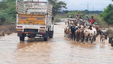 భారీ వర్షం పొంగి పొర్లిన వంకలు వాగులు